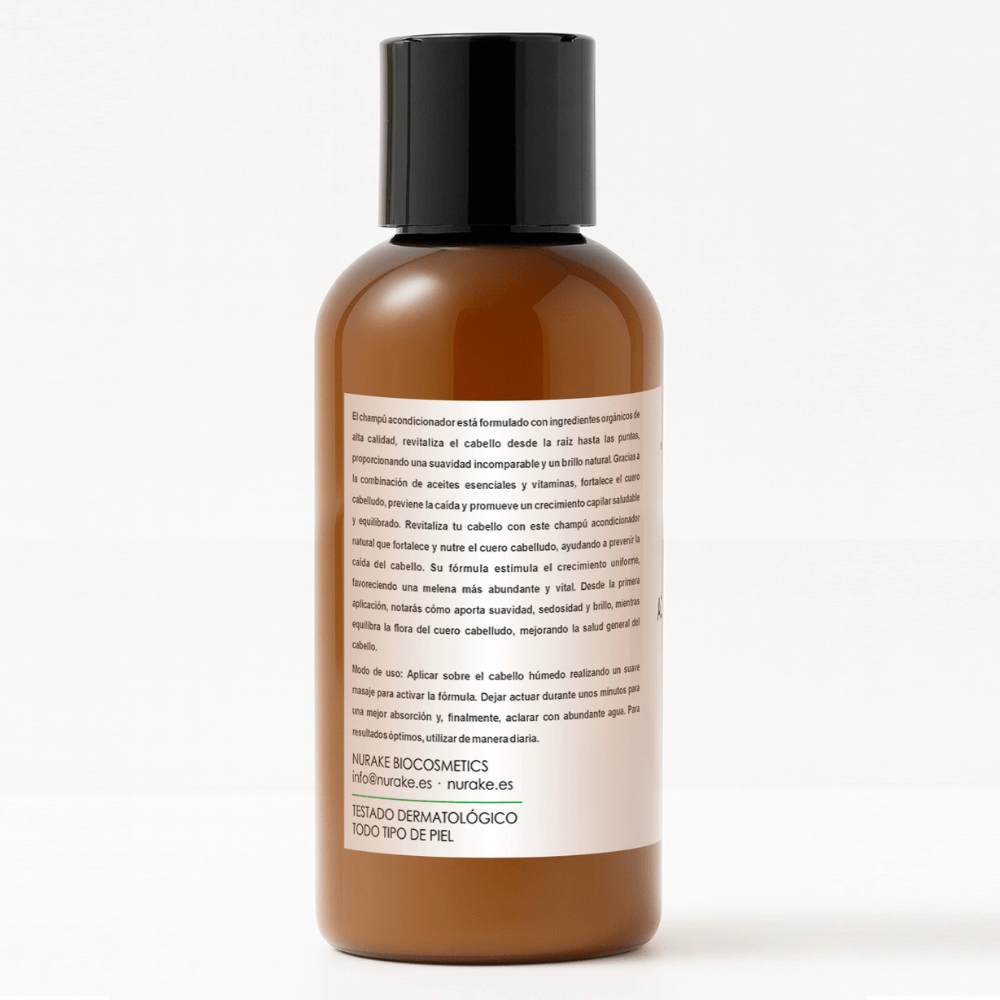 Para un resultado óptimo: utiliza después la Mascarilla capilar hidratante y desenredante de Nurake Biocosmetic y realiza masajes capilares regulares para estimular el crecimiento.