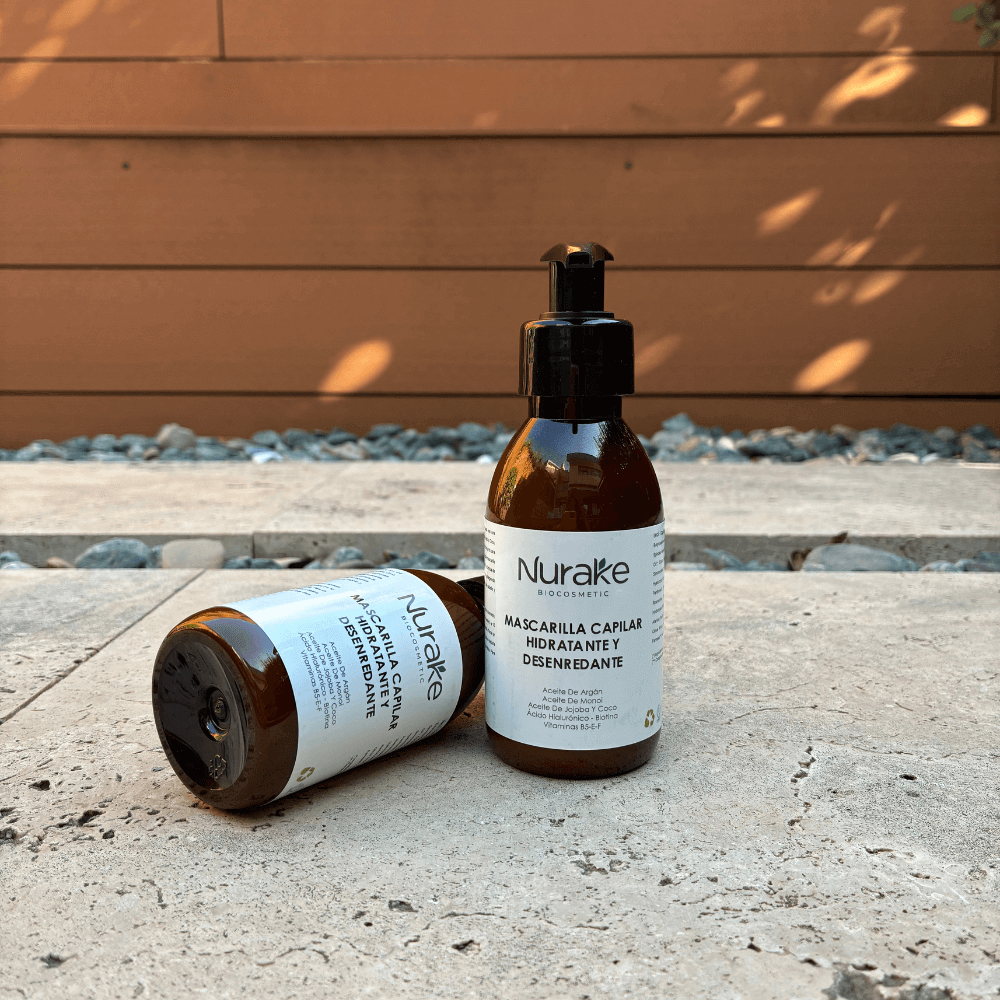 - Lava el cabello con el Champú Acondicionador Nurake Biocosmetic y aclara bien.